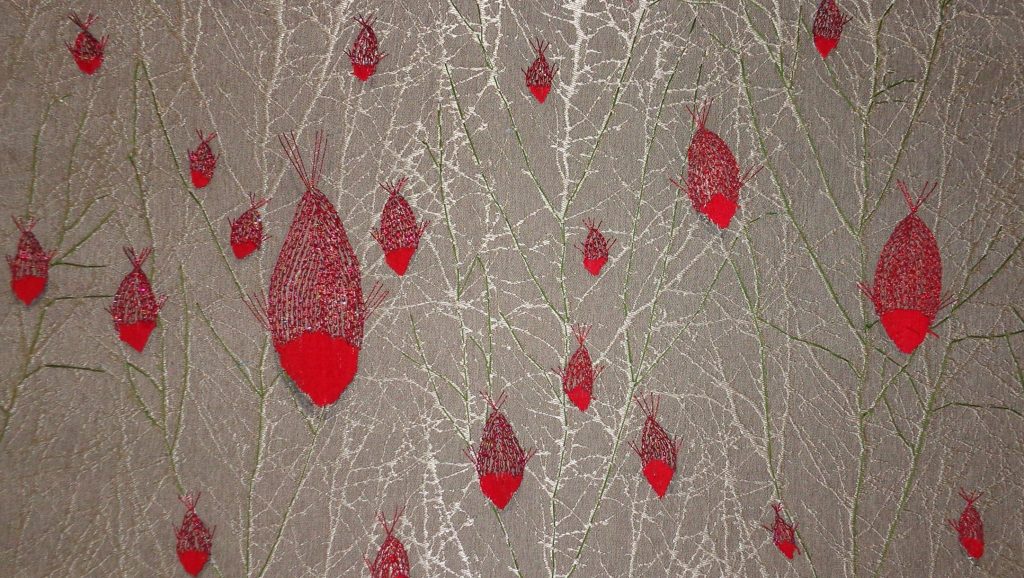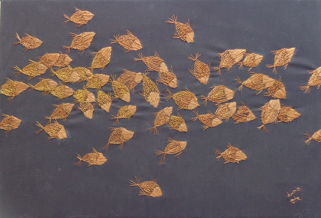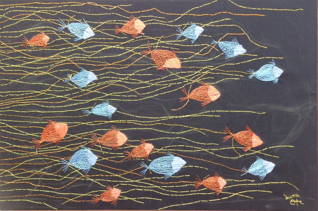 La mayoría de mis piezas están inspiradas en mis sueños, son un reflejo del alma. La serie “Cardumen” surgió de la oscuridad de la noche formando movimientos, creados por peces que daban energía a la creación de estas piezas. El contraste de las formas y el color eran la parte importante donde energías fluían dentro de mi mente, creando esta bella serie de piezas